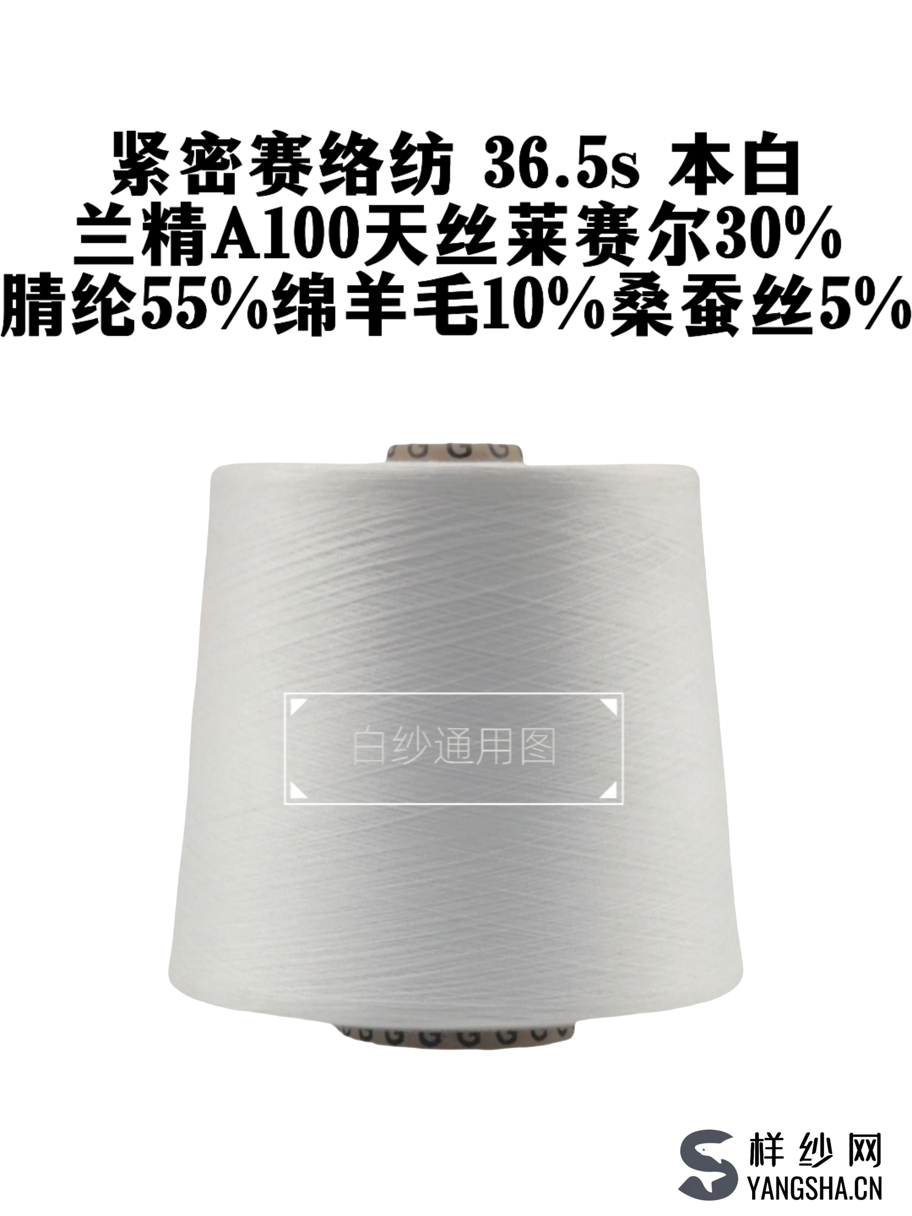 紧密赛络纺 35s 本白 兰精A100天丝莱赛尔30%腈纶55%绵羊毛10%桑蚕丝5%
